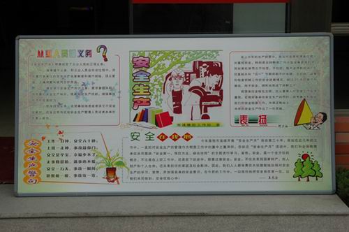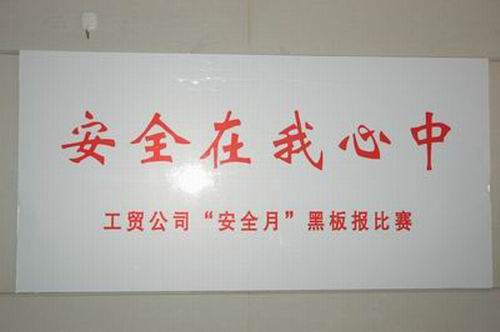南通工貿(mào)公司在安全月活動中,組織各集約化管理片區(qū)企業(yè)舉辦黑板報比賽。比賽以“綜合治理、保障平安”為宗旨,體現(xiàn)了“安全在我心中”和“以人為本、關愛生命”的崇高主題,具有內(nèi)容健康、創(chuàng)意新穎的特點,頗受參觀者好評。