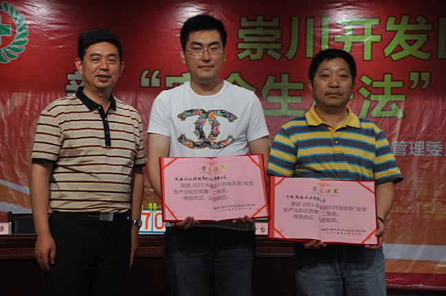 由崇川開(kāi)發(fā)區(qū)安全生產(chǎn)委員會(huì)組織的新“安全生產(chǎn)知識(shí)競(jìng)賽”于6月11日下午在金通靈公司舉行,南通紡織控股集團(tuán)紡織染有限公司由陳杰明帶隊(duì),陳云莉、王建興、吉王倩三人組成的代表隊(duì)參加了此次比賽。經(jīng)過(guò)緊張激烈的角逐,最終,紡織染代表隊(duì)榮獲比賽二等獎(jiǎng),南通崇川區(qū)安全監(jiān)督局副主任毛長(zhǎng)平為我公司獲獎(jiǎng)隊(duì)員頒發(fā)了榮譽(yù)證書(shū)。