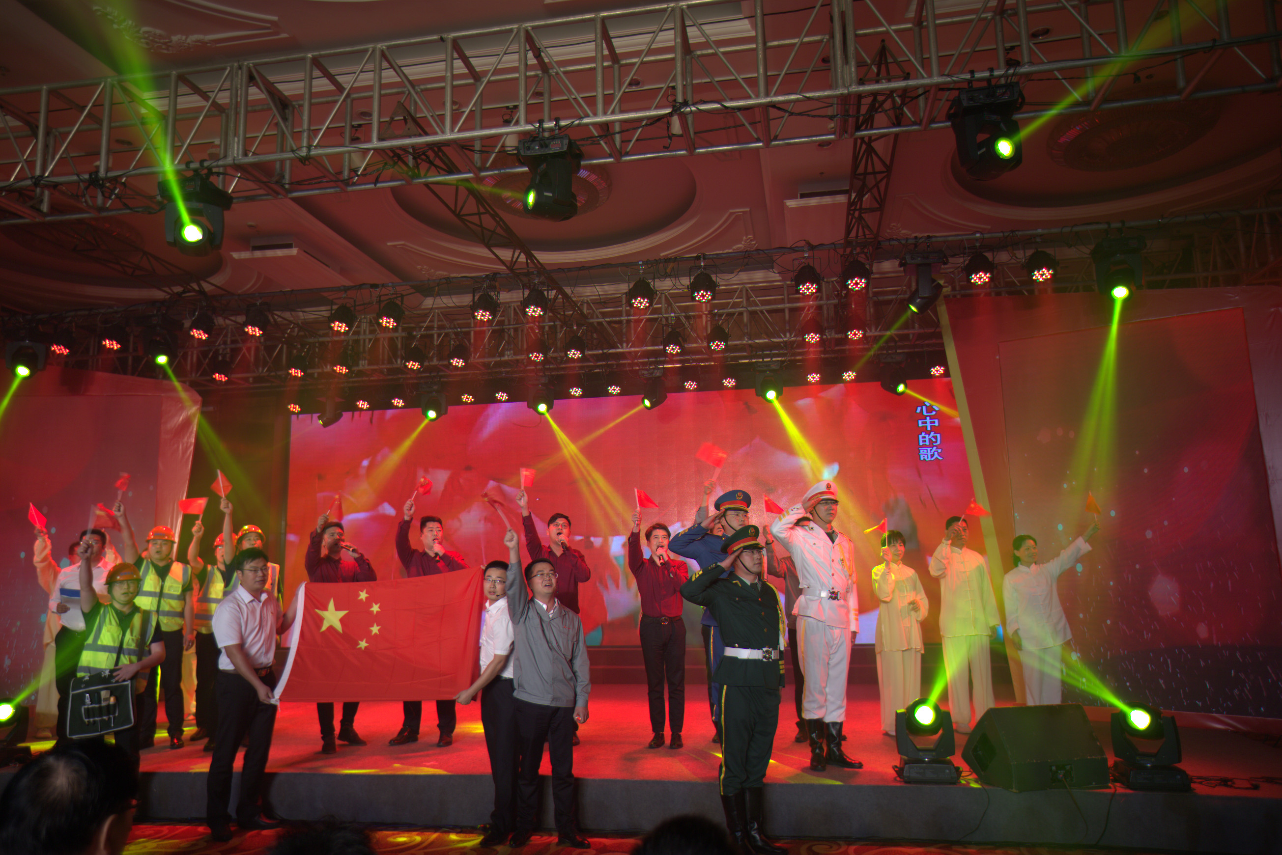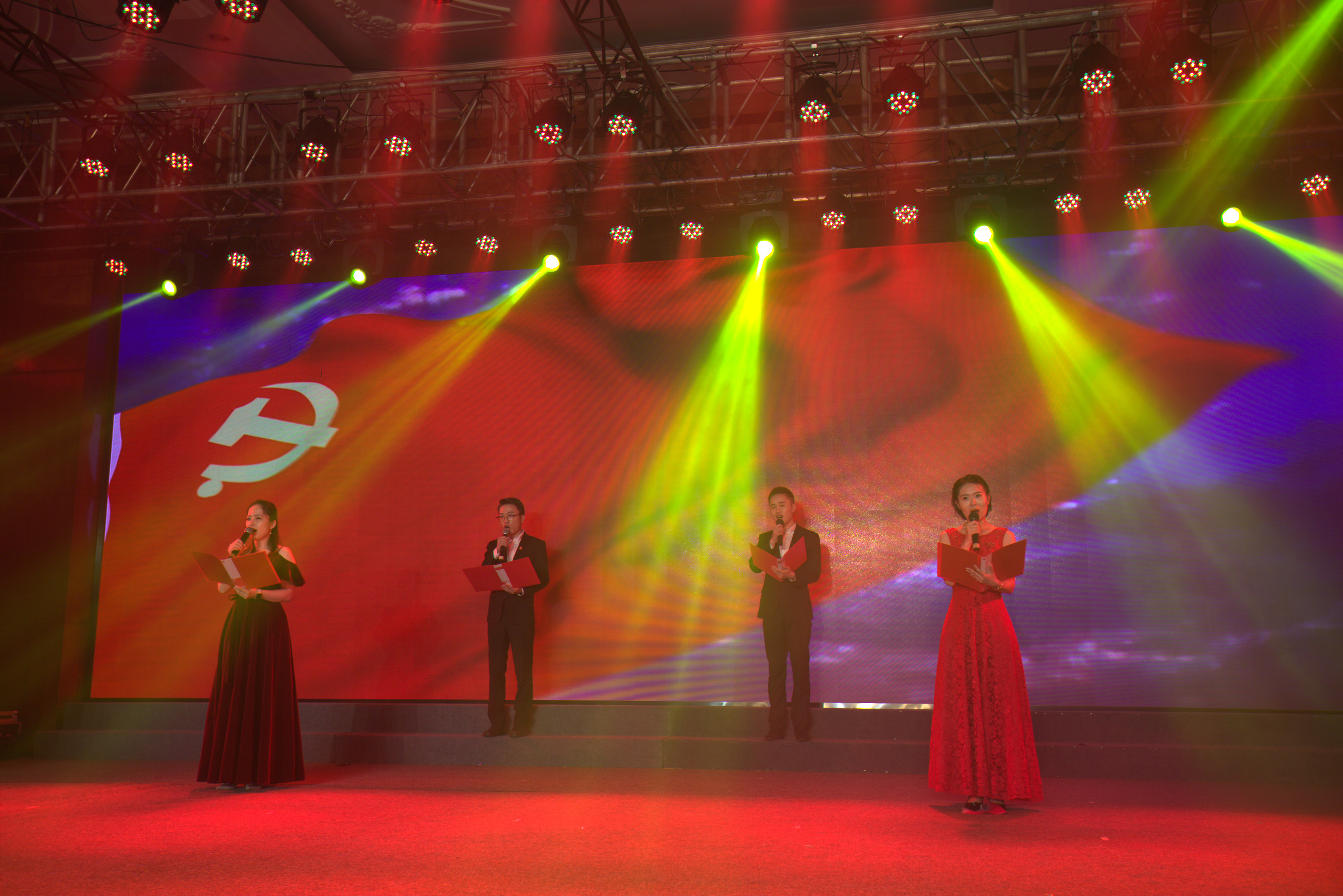 集團系統(tǒng)15家基層黨組織編排節(jié)目參加了演出,江天化學黨支部表演的《盛世花開》拉開了演出的帷幕,其他基層黨組織相繼表演了詩朗誦《高舉旗幟跟黨走》、《有一支歌》,歌舞表演《再唱山歌給黨聽》、《萬泉河水》、《紅旗飄飄》,小品《審舅舅》等節(jié)目,集團黨建共建單位浙商銀行南通分行黨委助演了民樂《青花瓷》節(jié)目。