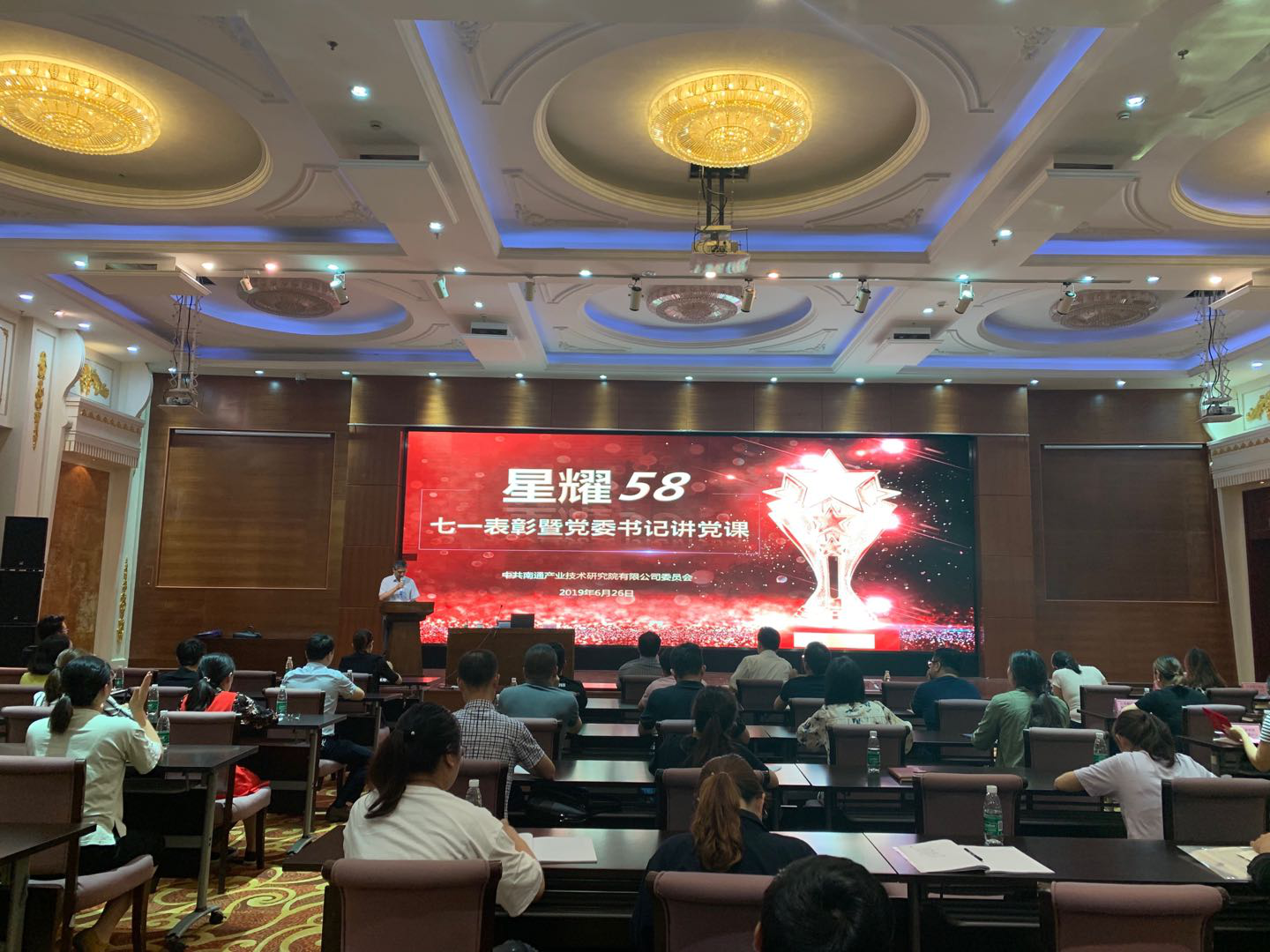 6月26日,為表彰先進(jìn)、弘揚(yáng)正氣,做好“不忘初心,牢記使命”主題教育活動,在建黨98周年,建國70周年之際,南通產(chǎn)業(yè)技術(shù)研究院隆重舉辦了2019年度“七一”表彰大會暨黨委書記上黨課活動。產(chǎn)研院、先進(jìn)院全體人員、園區(qū)企業(yè)部分黨員代表參加了會議。