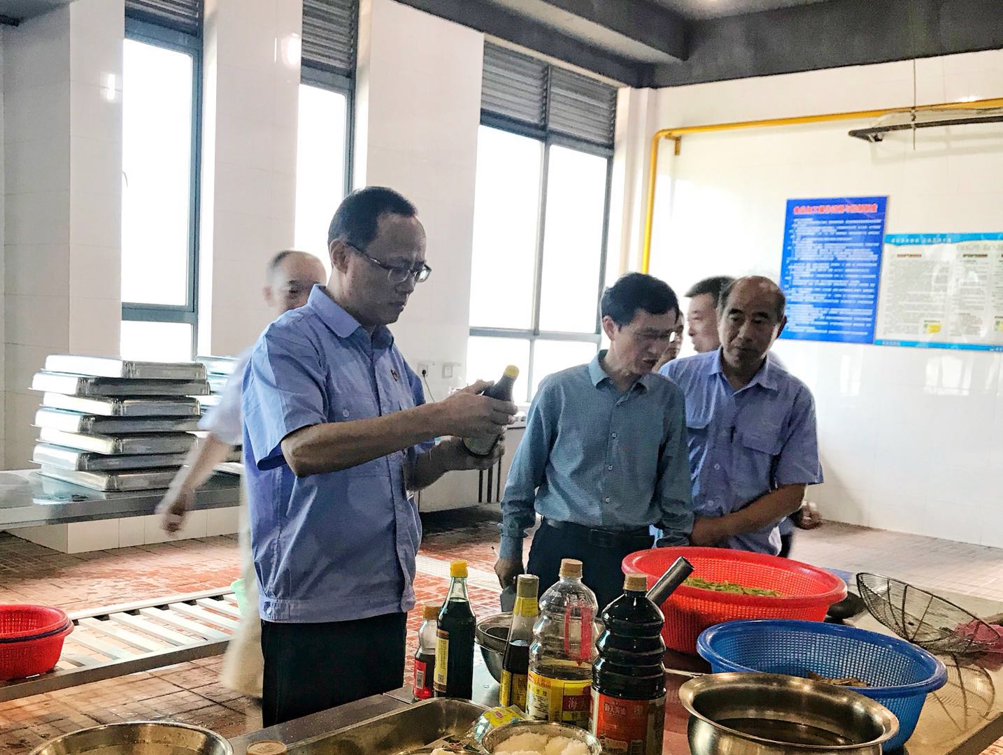 檢查人員深入食品原料庫(kù)房、操作間、洗碗間、留樣室等食堂的每個(gè)功能間,通過現(xiàn)場(chǎng)查看、詢問了解、檢查臺(tái)賬的方式對(duì)餐具消毒、原材料采購(gòu)、食材制作加工、食品留樣等環(huán)節(jié)進(jìn)行了細(xì)致檢查。對(duì)于檢查過程中發(fā)現(xiàn)的問題,要求立即整改。從檢查情況來看,兩個(gè)食堂整體衛(wèi)生狀況好、管理規(guī)范、操作流程符合要求。