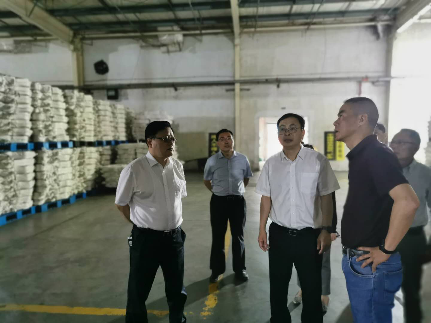 5月29日上午,南通市國資委陸雪松主任、凌美娟副主任帶隊到紡織染公司和運河橋糧庫檢查安全生產(chǎn)工作,產(chǎn)控集團總經(jīng)理陸強新、副總經(jīng)理張建華陪同檢查。