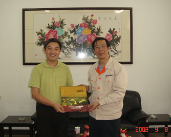 昆明機(jī)床總經(jīng)理張曉毅向陳董事長贈(zèng)送廠慶紀(jì)念品 |