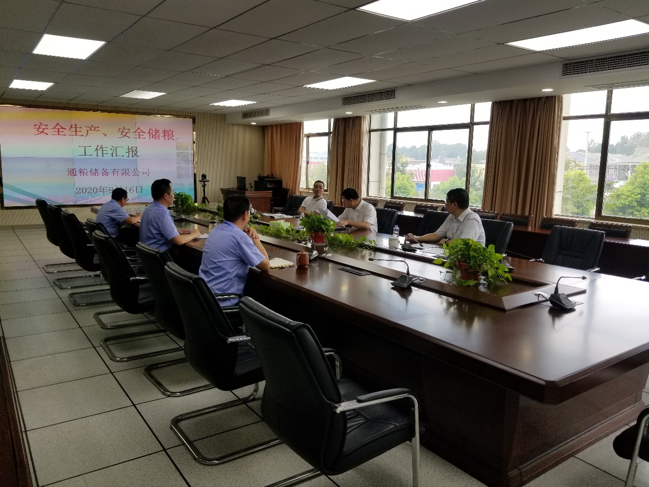 9月16日上午,產(chǎn)控集團黨委書記、董事長張劍橋,黨委副書記黃培豐一行對南通通糧糧食儲備有限公司進行安全儲糧、安全生產(chǎn)檢查并調(diào)研指導工作。通糧儲備公司領導班子成員參加調(diào)研。