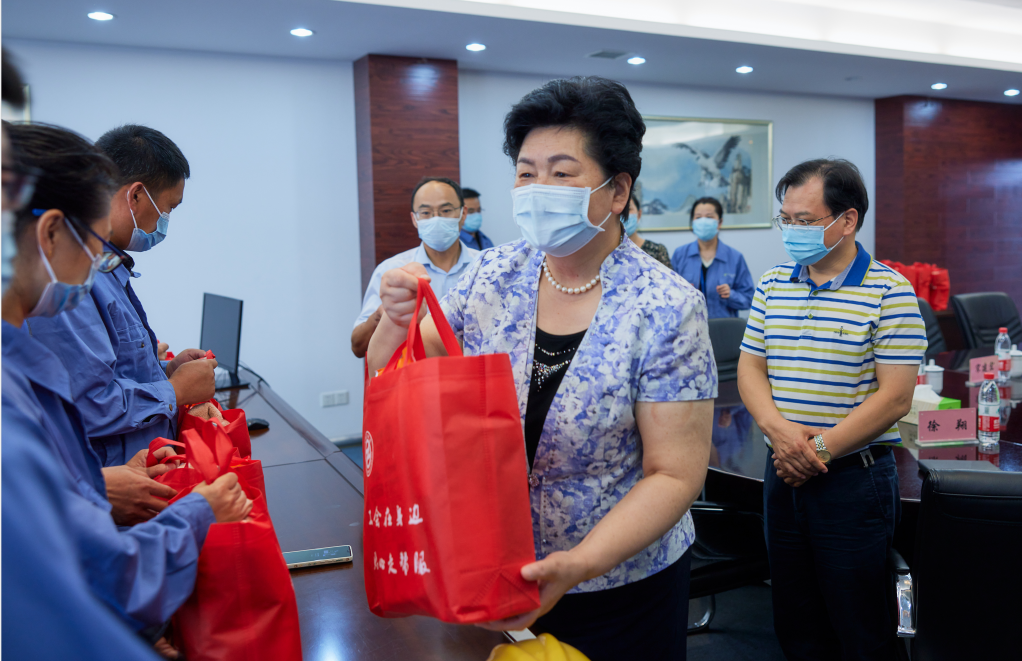 一下車,葛玉琴一行首先參觀了北廠區(qū)主要產(chǎn)品裝置,詳細(xì)了解了當(dāng)前疫情防控工作情況,走進(jìn)車間慰問一線員工并,送上防暑用品。葛玉琴指出,要嚴(yán)格按照上級(jí)部門的有關(guān)部署,毫不松懈地抓好抓實(shí)防疫工作,規(guī)范執(zhí)行各項(xiàng)規(guī)章制度,強(qiáng)化應(yīng)急處置能力,切實(shí)做好外來人員、車輛等日常查驗(yàn)工作。員工們?cè)诼鋵?shí)安全生產(chǎn)崗位職責(zé)的同時(shí),做好疫情期間個(gè)人防護(hù)。她表示,“職工群眾是最樸素的人”,各部門要關(guān)心關(guān)愛高溫一線員工,更好保障職工群眾正常生活,維護(hù)公司安全有序運(yùn)行。要進(jìn)一步重視產(chǎn)業(yè)工人隊(duì)伍改革,在公司轉(zhuǎn)型發(fā)展階段,加強(qiáng)政治引領(lǐng),更好地發(fā)揮企業(yè)職工干事創(chuàng)業(yè)主心骨的作用,提升企業(yè)凝聚力、向心力和生命力。