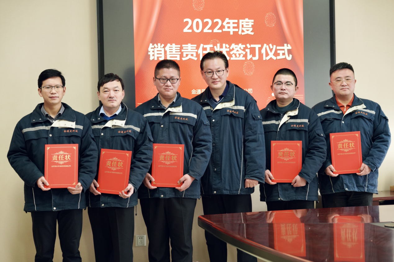 根據(jù)競(jìng)聘者的演講和答辯成績(jī),結(jié)合個(gè)人素質(zhì)的綜合評(píng)價(jià),壓縮機(jī)公司選拔出了最優(yōu)秀的銷(xiāo)售區(qū)域負(fù)責(zé)人。為確保完成公司2022年度戰(zhàn)略目標(biāo),競(jìng)聘成功的區(qū)域負(fù)責(zé)人與公司簽訂了責(zé)任狀。在大家雄心壯志的誓言里,我們看到了金通靈壓縮機(jī)營(yíng)銷(xiāo)鐵軍“使命必達(dá)”的勇氣和擔(dān)當(dāng)。