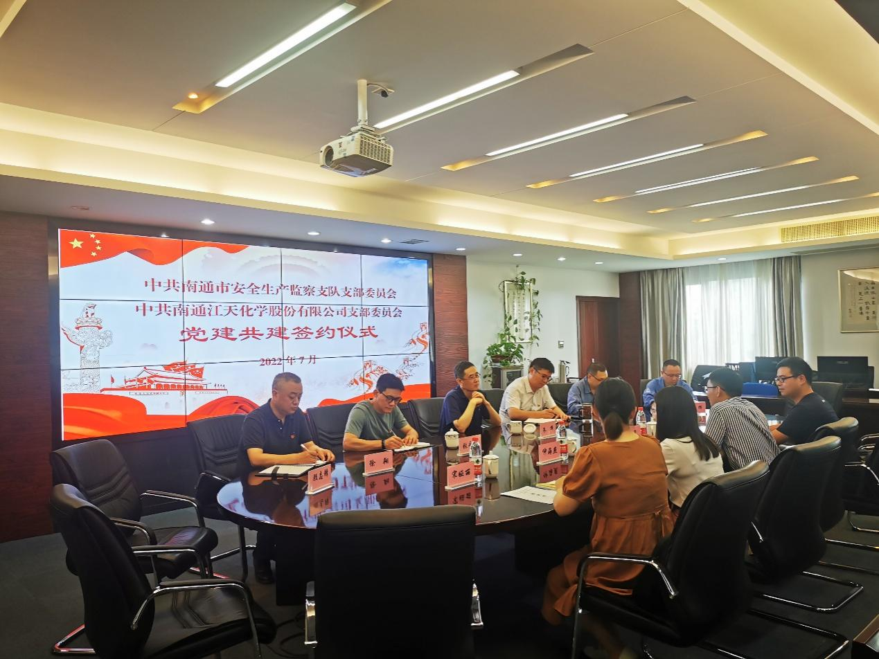 為認真貫徹落實習近平總書記關于安全生產(chǎn)方面的重要論述,深化“紅色引領 綠色智造”黨建品牌建設,深入推進融合黨建實踐,提升安全生產(chǎn)管理工作成效。7月份,江天化學黨支部與南通市安全生產(chǎn)監(jiān)察支隊黨支部開展了黨建共建簽約儀式,進一步加深合作交流,創(chuàng)新黨建結對共建形式。